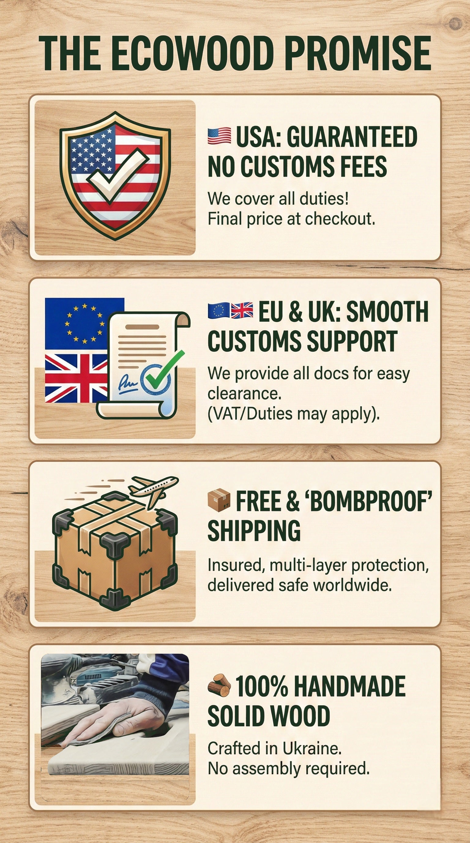 No Customs Fees (USA)/Smooth Customs Support (EU & UK)